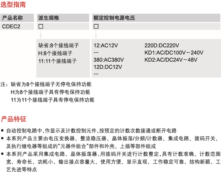 DELIXI德力西CDEC2 系列計(jì)數(shù)器 產(chǎn)品參數(shù):