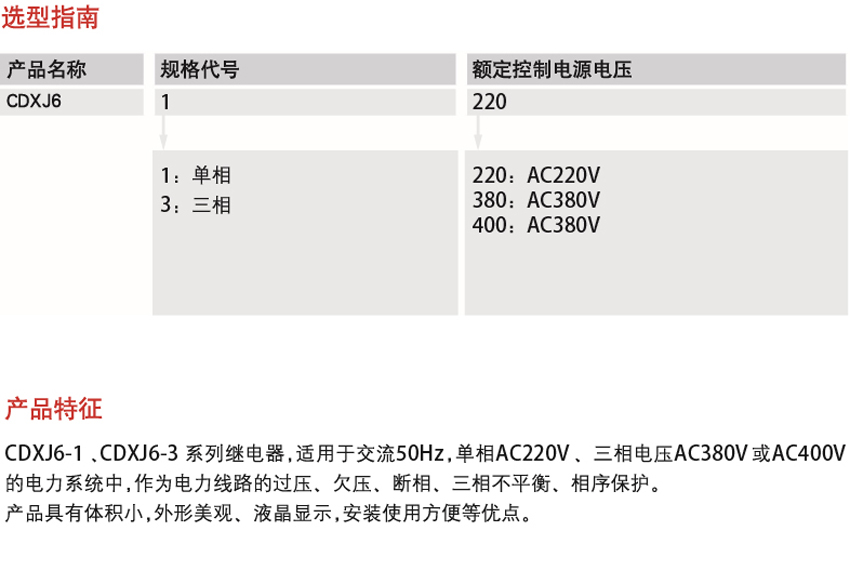 DELIXI德力西CDXJ6系列繼電器CDXJ6-1、CDXJ6-3繼電器(以下簡稱繼電器),適用于交流50HZ,單相AC220V、三相電壓AC380V或AC400V的電力系統(tǒng)中,作為電力線路的過壓、欠壓、斷相、三相不平衡、相序保護(hù)。具有體積小,外形美觀,液晶顯示,安裝使用方便等優(yōu)點(diǎn)。.